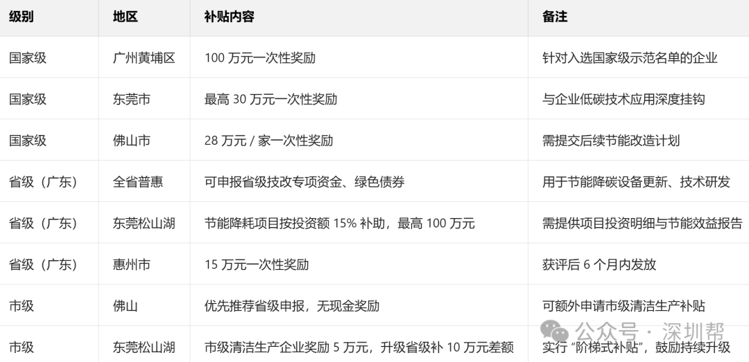 关注园区级专项补贴(如东莞松山湖 “绿色制造之星” 奖励),部分园区可为企业提供免费的节能诊断服务,帮助梳理申报亮点。