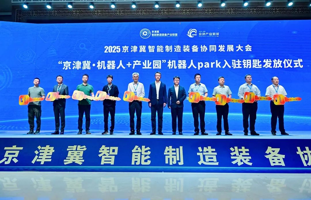 此外,“京津冀·机器人+产业园”机器人park举行了入驻钥匙发放仪式,湖南中南智能、哈普泰克(上海)机器人、四六足机器人项目等9家行业优质企业及重点项目意向入驻武清京津产业新城科创先导区,为京津冀机器人产业高质量发展注入强劲动能。