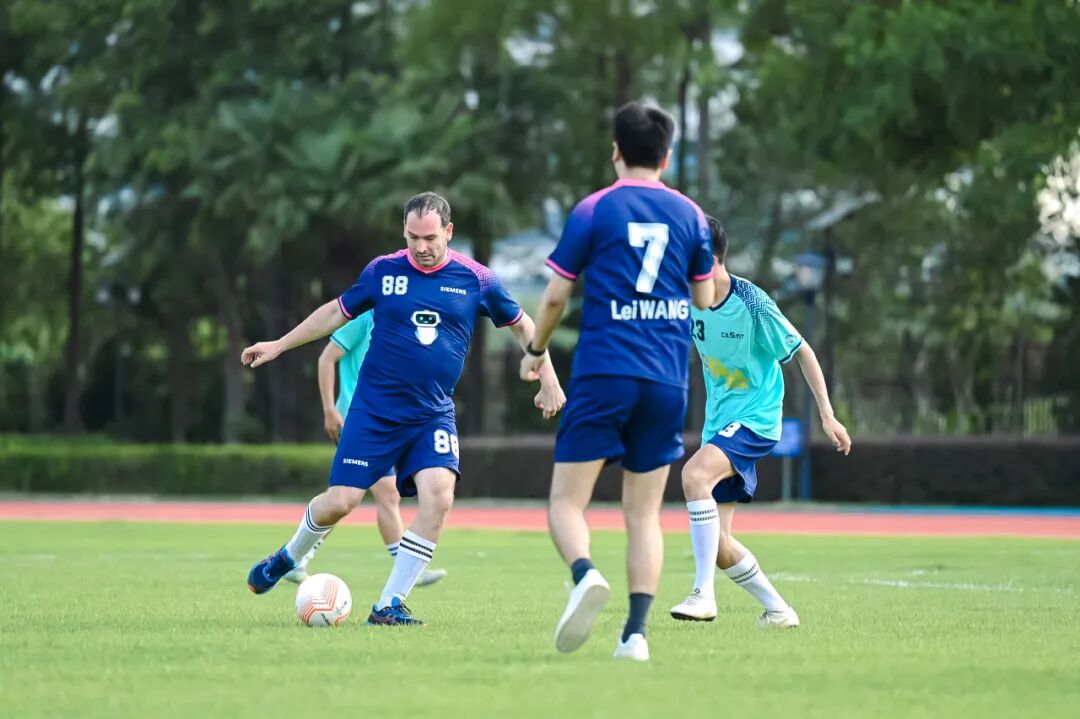 政企会晤 共话区域产业发展新机遇 峰会期间,常州市钟楼区有关领导与西门子代表团举行会晤。 政企双方围绕区域智能制造产业生态建设、技术成果转化机制及创新资源整合等议题展开交流,此次会晤为西门子与中科摩通的合作创造了良好的区域环境,推动技术合作与地方产业发展形成深度共振。 备忘录签署 锚定合作新起点 在双方团队的共同见证下,西门子与中科摩通正式签署合作备忘录。这份备忘录不仅是对前期合作成果的总结与肯定,更标志着双方在人工智能与智能制造融合领域开启新的合作阶段。 未来,双方将依托各自技术优势与产业资源,在技术研发、场景应用及市场拓展等方面实现更紧密的协同,共同探索智能制造的创新路径。 友谊球赛 共筑合作温情纽带 为增进团队间的交流与互信,一场轻松愉快的足球友谊赛拉开帷幕。双方团队成员以球会友,在绿茵场上展现了拼搏协作的精神风貌。这场短暂却热烈的球赛,不仅是对双方团队凝聚力的生动展现,更以体育特有的感染力,为技术合作之外的人文交流写下了温暖注脚,让务实的商业伙伴关系增添了一份并肩前行的默契与信任。